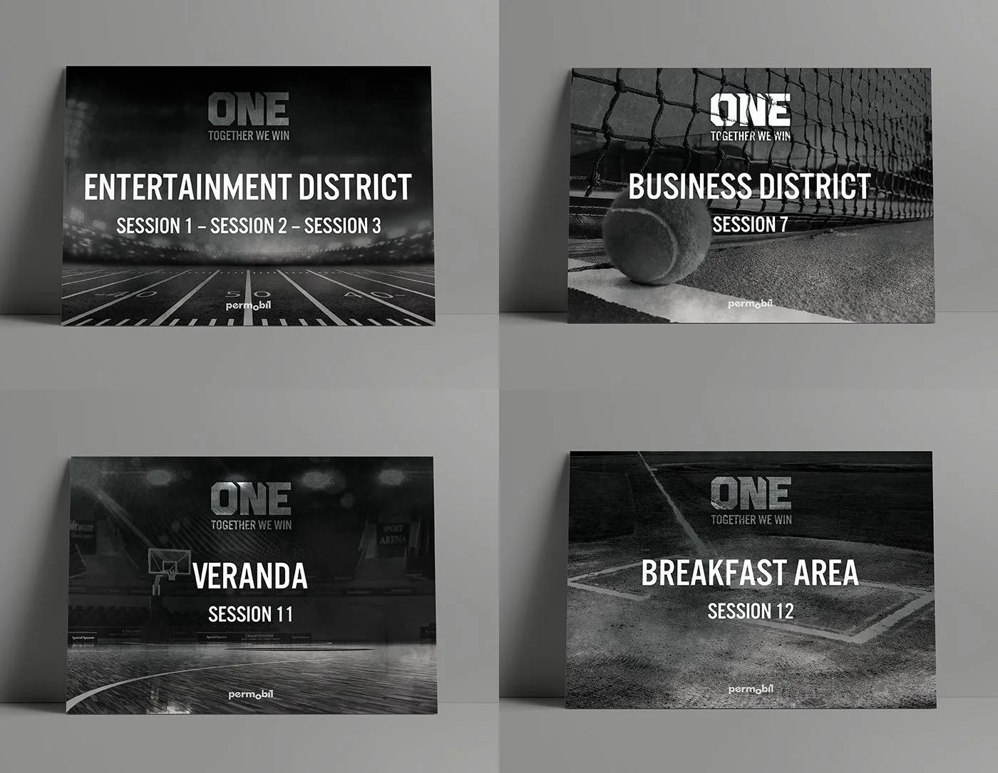 The Permobil hosted their annual sales meeting to inspire and encourage their sales reps to have their best year year. The theme was about pulling together as one team, One - Together We Win. Designed logo, name badges, event signage, notebook and pop-up wall artwork, and Powerpoint slides.